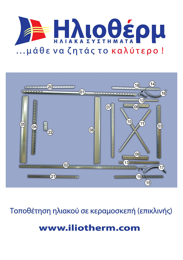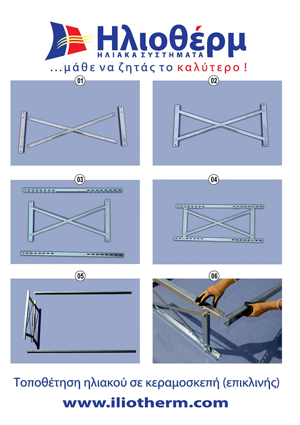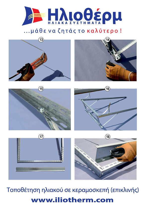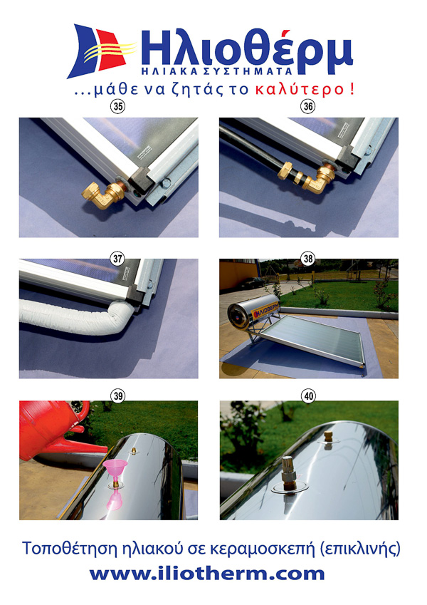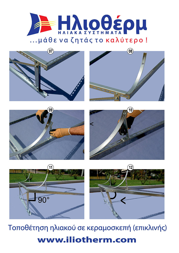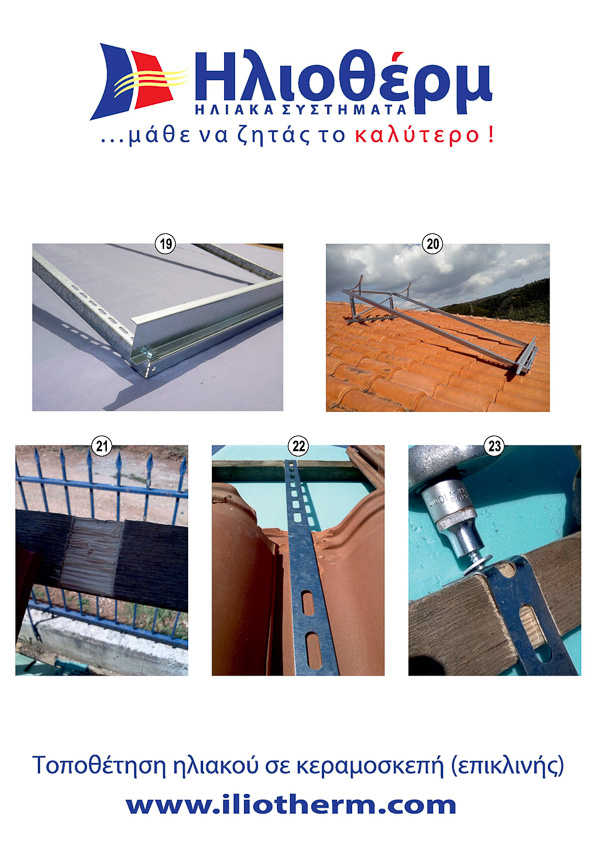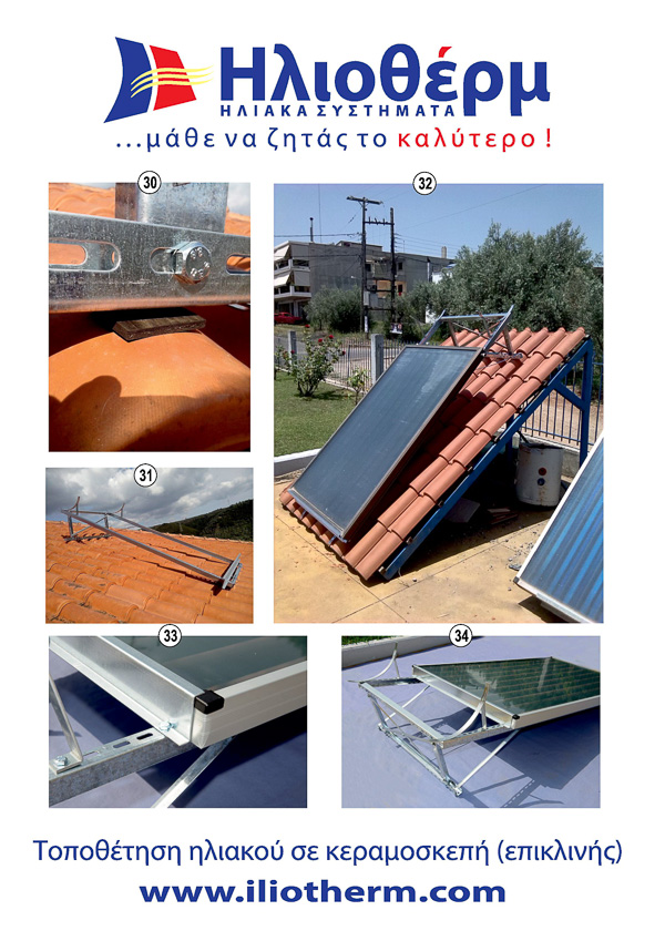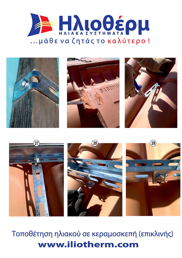 Οδηγίες επικλινής εγκατάστασης για επαγγελματίες υδραυλικούς και πελάτες ηλιακών θερμοσιφώνων της εταιρίας Ηλιοθέρμ σε κεραμοσκεπή.