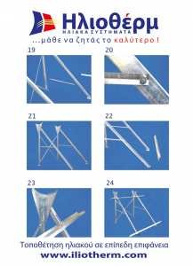 Εάν ο θερμοσίφωνας πρέπει να τοποθετηθεί σε στέγη με γωνία κλίσης μικρότερη από 35º, θα πρέπει απαραίτητα να χρησιμοποιηθεί ειδική βάση ανθεκτική σε δυνατούς ανέμους και καταιγίδες, ανεβάζοντας την κλίση έως και 45º (διατίθεται από την Ηλιοθέρμ).