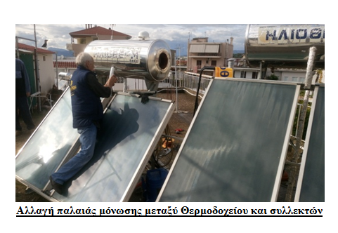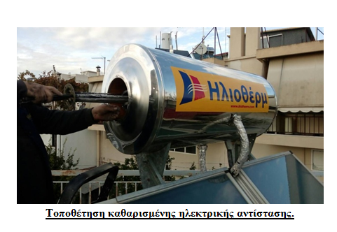 Αλλαγή ράβδου μαγνησίου (ανόδιο), αλλαγή φλάτζας ηλεκτρικής αντίστασης, καθαρισμό σε όλο το εσωτερικό μέρος του θερμοδοχείου, αναρρόφηση με ειδική ηλεκτρική σκούπα όλων των αλάτων και λοιπών σωματιδίων, πλύσιμο με νερό, καθαρισμό της ηλεκτρικής αντίστασης για καλύτερη απόδοση και οικονομία στο ρεύμα, αλλαγή παλαιάς επιγραφής Ηλιοθέρμ, συμπλήρωμα αντιψυκτικού υγρού, αλλαγή σε μονώσεις μεταξύ θερμοδοχείου και συλλεκτών αλλά και του δικτύου αν χρειάζεται και τέλος γίνεται γενικός έλεγχος σε όλα τα τμήματα του ηλιακού.